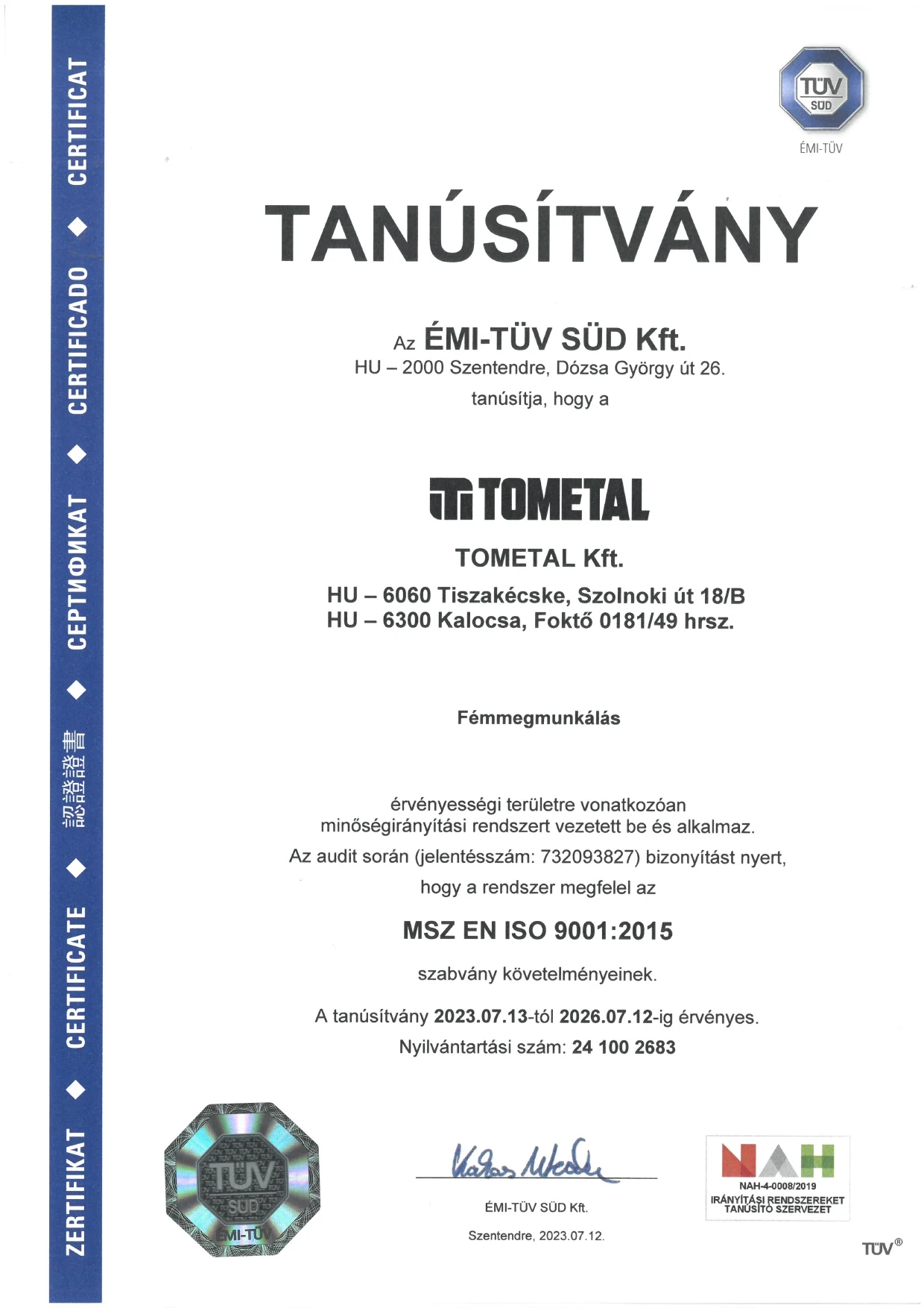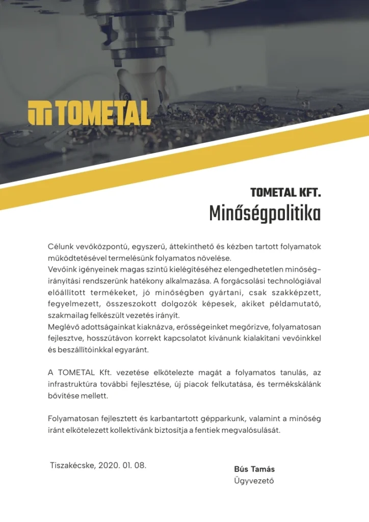 Ha nem engedsz kompromisszumot a minőség terén, akkor a Tometal a Te partnered!